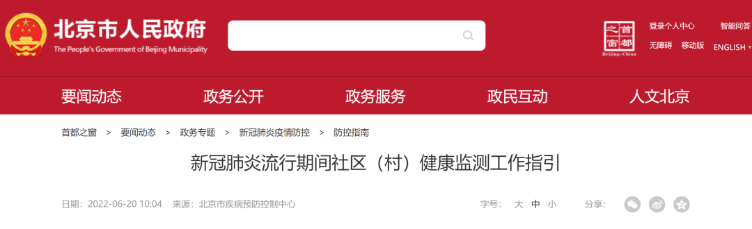昨日(6月20日),北京發布《新冠肺炎流行期間社區(村)健康監測工作指引》(以下簡稱《指引》)。