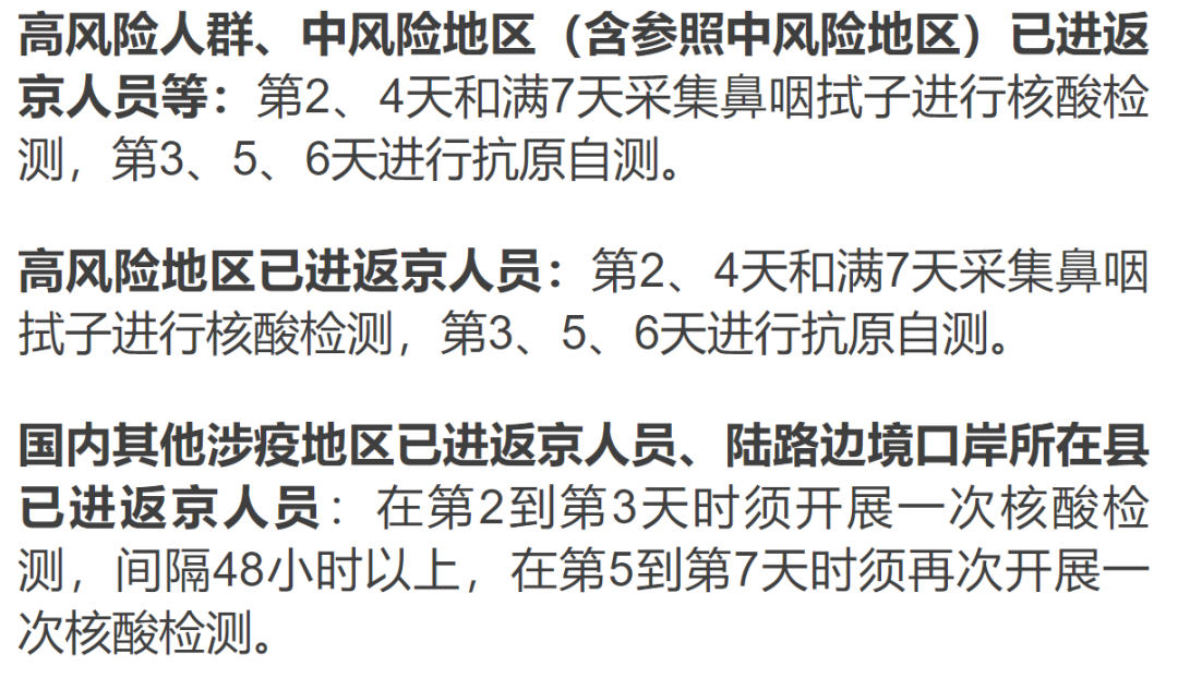 由以上信息可知,以后中高風險地區涉疫人員入京無須再隔離,只要進行7天健康監測即可。