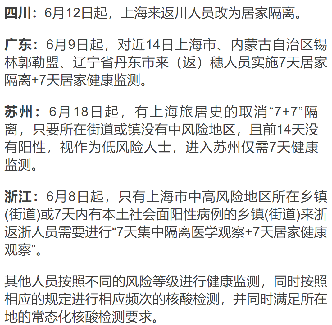 目前,北京“酒吧疫情"已基本阻斷,上海疫情也正處于收尾階段,但兩地因仍存在中高風險地區,所以遲遲未能“摘星”。截至6月19日20時,全國現存11個高風險地區、41個中風險地區。除北京、上海外,同樣帶星的還有內蒙古、遼寧等多地。此前行程碼帶星在各地活動范圍上是受到一定限制的。絕大部分城市對帶星地區來訪人員采取“7天居家隔離+7天居家健康觀測”,或至少3天集中隔離的嚴格管控措施。上述舉措曾一度引發社會關注,有贊同也有持保留態度的。事實上,這些都是地方出于當地疫情形勢、現有防控能力的綜合評斷。但隨著疫情防控進入常態化、精準化,全國各地防疫政策正在以盡量減少對人民群眾生活影響為目的,悄然發生變化。