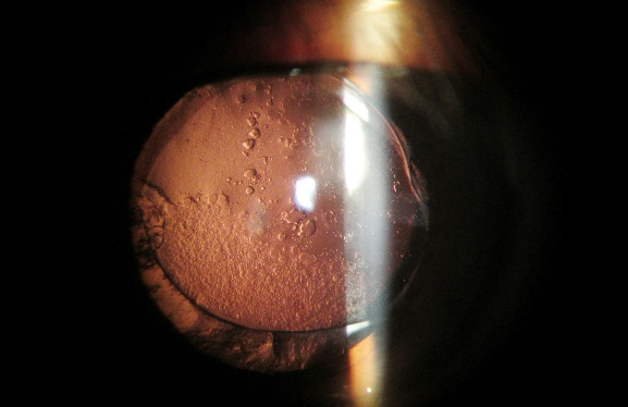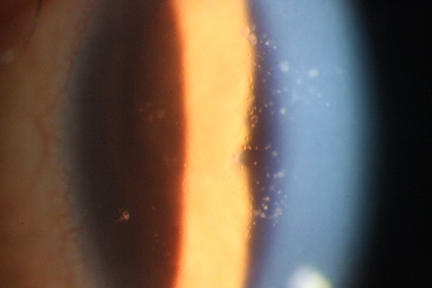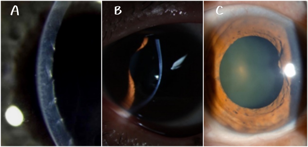 A:窄裂隙+弱背景照明可以觀察到裂隙焦點所處的位置及背景,如角膜水腫和狄氏膜皺褶;