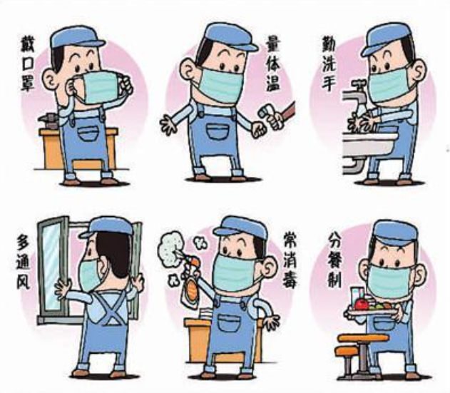 及時做好手部衛生。自室外返回、咳嗽手捂后、飯前便后、烹飪或準備食物前,應使用洗手液(或肥皂)流動清水洗手,揉搓雙手至少20秒。